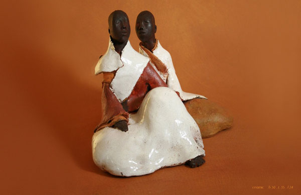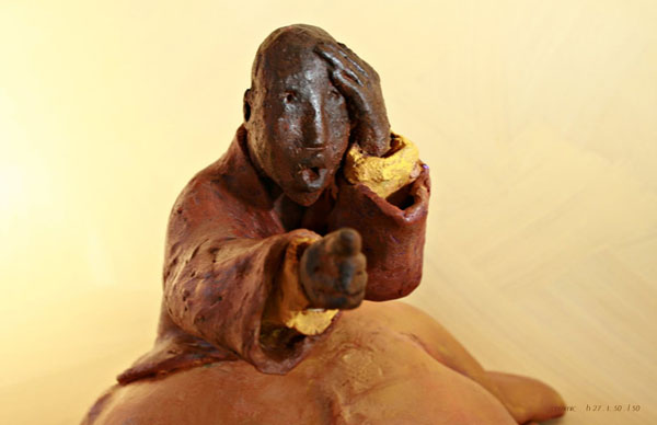 Gaby Kretz présente ses Hommes retrouvés dans la glaise, image des Hommes de tous les temps. Visages anonymes, d'une présence silencieuse et parlante...